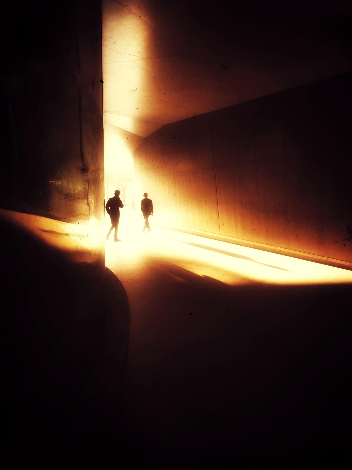 強烈的光線射入長長的隧道,人們匆匆走過黑暗,奔向光明。或許是太過耀眼,仿佛穿越時空去往另一個世界。 ???