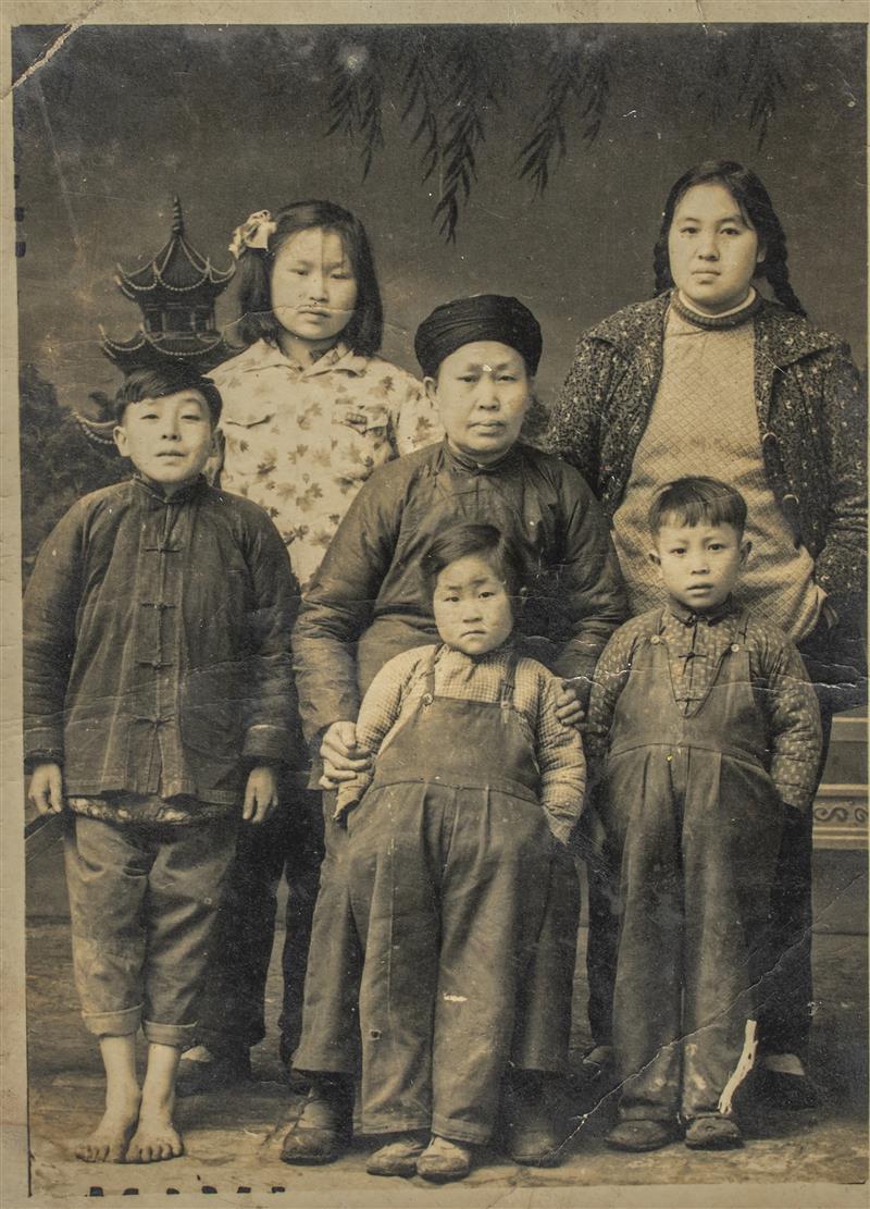 圖中的男主人吳榮軒老先生是云南省瀘西縣第一個照相人,妻子石氏(圖中女主人)十年前從外縣嫁到吳家,由于當時的交通(僅有馬幫)條件落后及家庭事務(wù)石老太太一直沒有回過娘家。岳母十分思念女兒一家,吳老先生自拍了一張全家福精心裝裱后寄給岳母以慰老人的思念之情。 民國27年 倪建斌