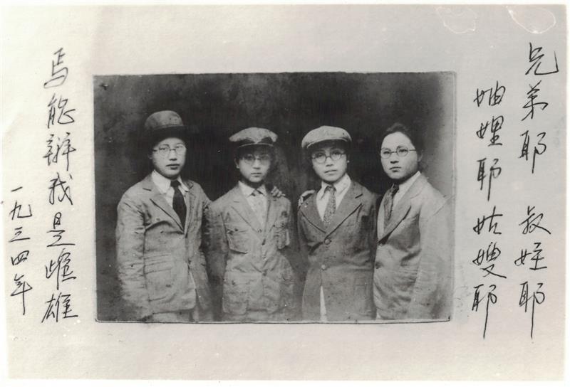 照片拍攝于1934年四川宜賓縣,宜賓女子中學(xué)4位女學(xué)生受女權(quán)運動思想影響,身著男裝拍攝了一張合影。照片中左起第二人為聶俊熙,現(xiàn)年104歲,現(xiàn)居四川宜賓,照片上的詞為聶俊熙所提。 段雪忠