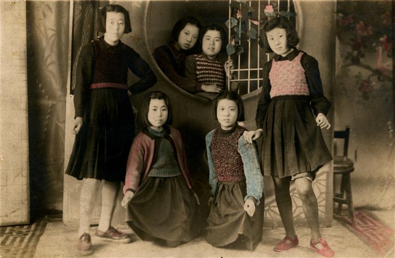 這是母親沈陽大南學(xué)校小學(xué)畢業(yè)后,于1948年和同學(xué)到照像館的合影留念(后面窗口左一)。當時家里很窮,母親穿著打補丁的褲子和舊布鞋,看到其他幾個富家女孩穿著漂亮的裙子和時髦的皮鞋,感到太寒酸了,就站到后面去了。 馬久利