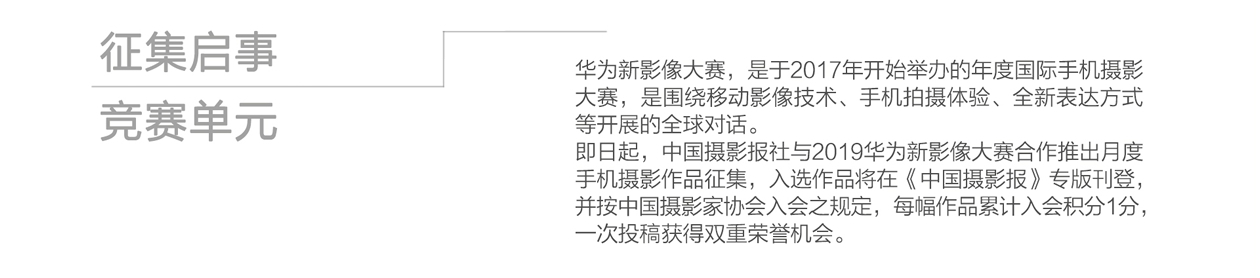 華為新影像大賽,作為“華為新影像發(fā)展計(jì)劃”的重要組成部分,致力在全球范圍內(nèi)為手機(jī)用戶提供展示自我的平臺(tái),同時(shí)攜手世界領(lǐng)先的攝影和視覺文化機(jī)構(gòu)ICP(紐約國(guó)際攝影中心),匯聚頂尖攝影資源和年輕力量,旨在共同打造權(quán)威、專業(yè)、與時(shí)俱進(jìn)的“新影像”文化。