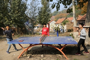 練習(xí)乒乓球的山里娃
